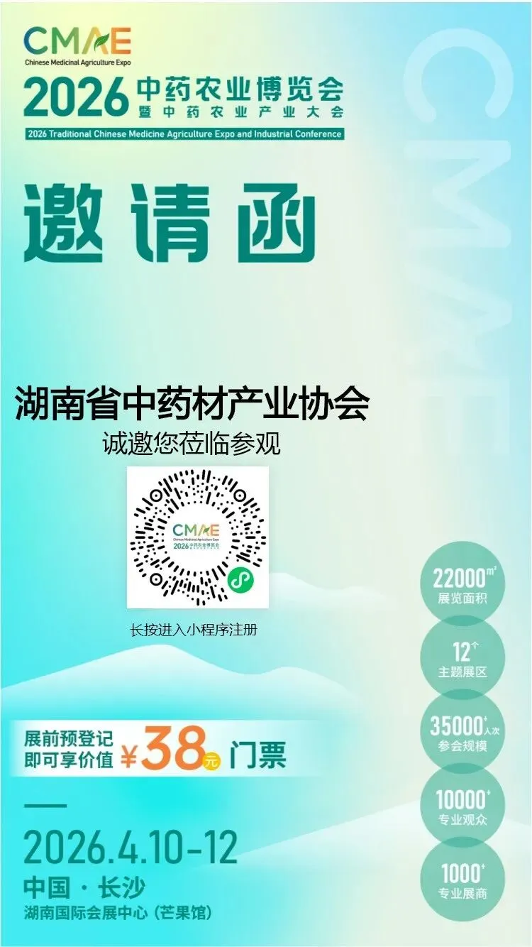 作为全国首个聚焦中药农业全产业链的专业展会,首届中药农业博览会将于4月10日—12日(星期五至星期日)在湖南国际会展中心(芒果馆)盛大启幕。目前,采购商预登记通道已限时开启,诚邀行业同仁共赴这场产业盛宴。