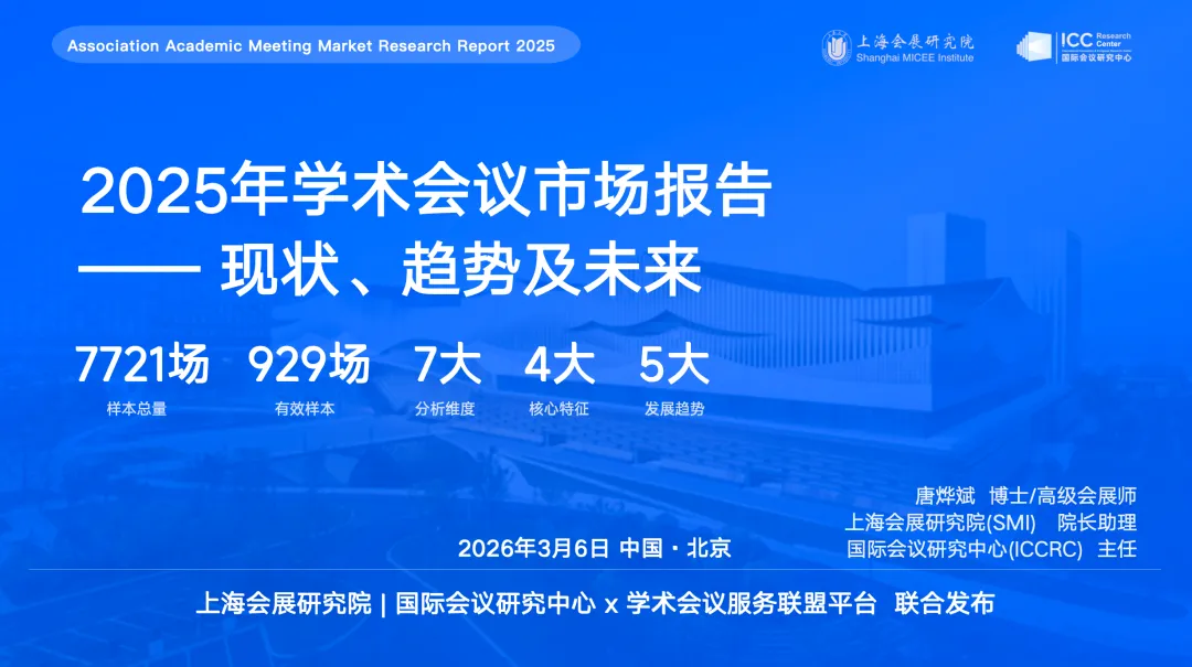 本期推送我中心主任唐烨斌博士3月6日在美迪康合作伙伴用户大会上发布的《2025年学术会议市场报告》。该报告由上海会展研究院国际会议研究中心与学术会议服务联盟联合编制。目前会议上发布的是征求意见版,中心即将进行充实修订后的官方正式版发布,敬请期待。