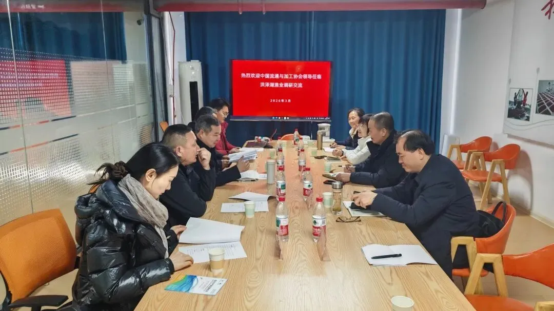 调研组在江苏省渔业协会邹勇秘书长陪同下,与江苏省洪泽湖渔业协会及相关企业负责人座谈交流。江苏省洪泽湖渔业协会会长张玉斌表示,下一步将在稳定生产的基础上,提升深加工产品研发能力、提高产品转化率,制定行业标准,着力解决出口资质认证难题,进一步拓展国内外销售渠道。