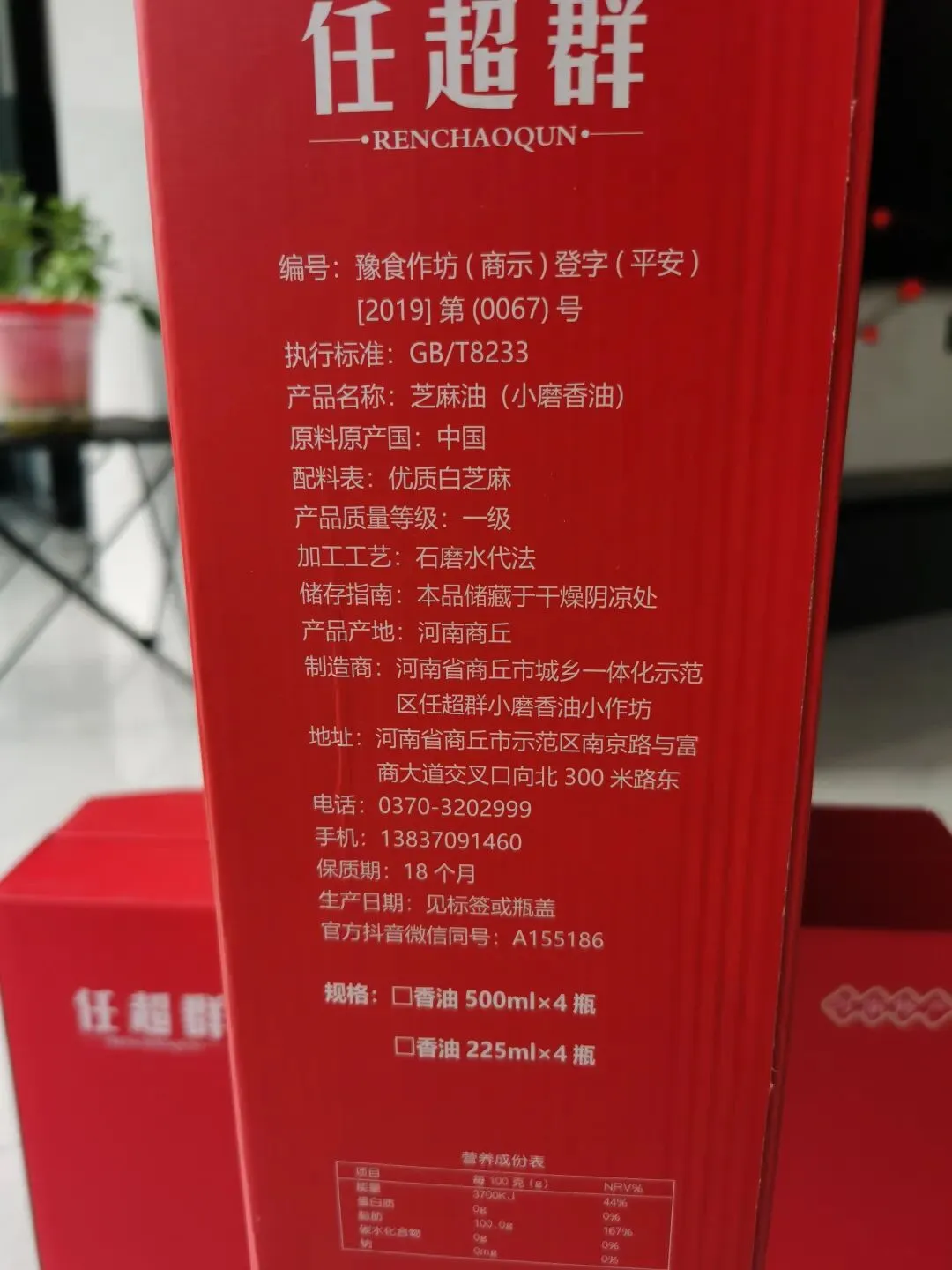 - 品牌名称:任超群(又称"任超群良心香油")