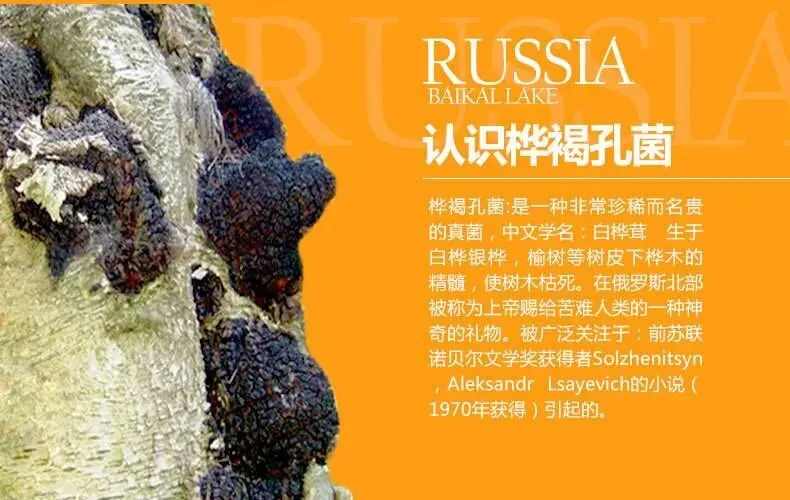白桦茸的主要成分白桦茸的化学成分主要包括多糖、桦褐孔菌醇、桦褐孔菌素、SOD、氧化三萜类化合物、叶酸衍生物、香草酸、丁香酸、类固醇、生物碱、木质素、多酚类等200多种成份,研究发现其所含的SOD(超氧化物岐化酵素)是灵芝的55倍, 巴西蘑菇的23倍, 猴头菇的25倍, 且水溶性多醣类如1,3-1,6 β--葡聚糖55.6mg/g。近年来,随着白桦茸的诸多健康价值被发现,逐渐在日韩、欧美以及国内流行起来,受到消费者青睐。事实上,在白桦茸的主产地俄罗斯,白桦茸的应用已有五六百年历史,列入多部药典,为俄罗斯民间古方,诺贝尔文学奖得主索尔仁尼琴的名著《癌病房》也曾提到它。俄罗斯医学专家公布:桦树茸对糖尿病有效率高达93%。白桦茸的药用价值(1)降血糖作用在白桦茸菌核中含有1种糖蛋白和1种水溶性多糖,均有明显的降血糖作用,尤其是白桦茸多糖提取液,其降血糖作用时间可持48h。(2)抗肿瘤作用白桦茸含有白桦脂酸,这种物质能抑制293型癌细胞达70% ,具有很强的抗肿瘤性,且无毒副作用。主要通过抑制蛋白质的生物合成和抗有丝分裂来影响肿瘤细胞的分裂生长,并诱导肿瘤细胞凋亡而起到抗肿瘤作用。白桦茸对多种肿瘤细胞(如乳房癌、唇癌、胃癌、耳下腺癌、肺癌、皮肤癌、直肠癌、霍金斯淋巴癌)有明显的抑制作用。白桦茸可防止癌细胞转移、复发,用于配合恶性肿瘤患者的放疗、化疗,增强病人的耐受性,减轻毒副作用。(3)对心血管系统作用白桦茸所含的三萜类化合物和类固醇有改善血液循环、调整血压、降低血液胆固醇的作用,临床研究认为白桦茸对预防与治疗高血压有一定的作用。(4)抗病毒作用白桦茸水提取物可抑制人类免疫缺陷病毒蛋白酶,已确定的活性成分是一种水溶性的高分子量木质素衍生物。加拿大和芬兰等国用白桦茸醇复合物提取的高性能标准提取物来治疗流行性感冒。另外据日本学者报道,白桦茸对大肠杆菌中毒也有很好的治疗作用。(5)增强免疫和抗氧化作用白桦茸含有免疫增强物多糖类和抗氧化剂SOD等多种物质,可增强免疫相关淋巴细胞的免疫功能,并具有清除体内自由基和抗氧化的作用,可延长传化细胞的分裂时间,延长细胞寿命,因而能有效地延缓衰老。(6)治疗糖尿病俄罗斯Komsomlshi制药公司白桦茸精粉对糖尿病的治愈率为93%。(7)其他药理作用白桦茸对肝炎、胃炎、十二指肠溃疡、肾炎有明显的治疗作用,并对呕吐、腹泻、胃肠功能紊乱有治疗作用。