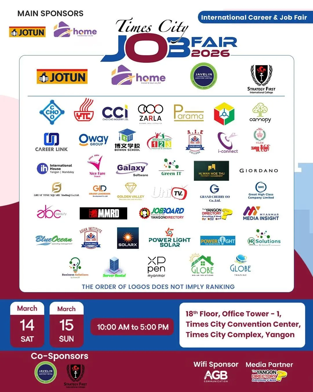 地点:仰光Times City Complex,Office Tower (1) 18楼,Times City Convention Center