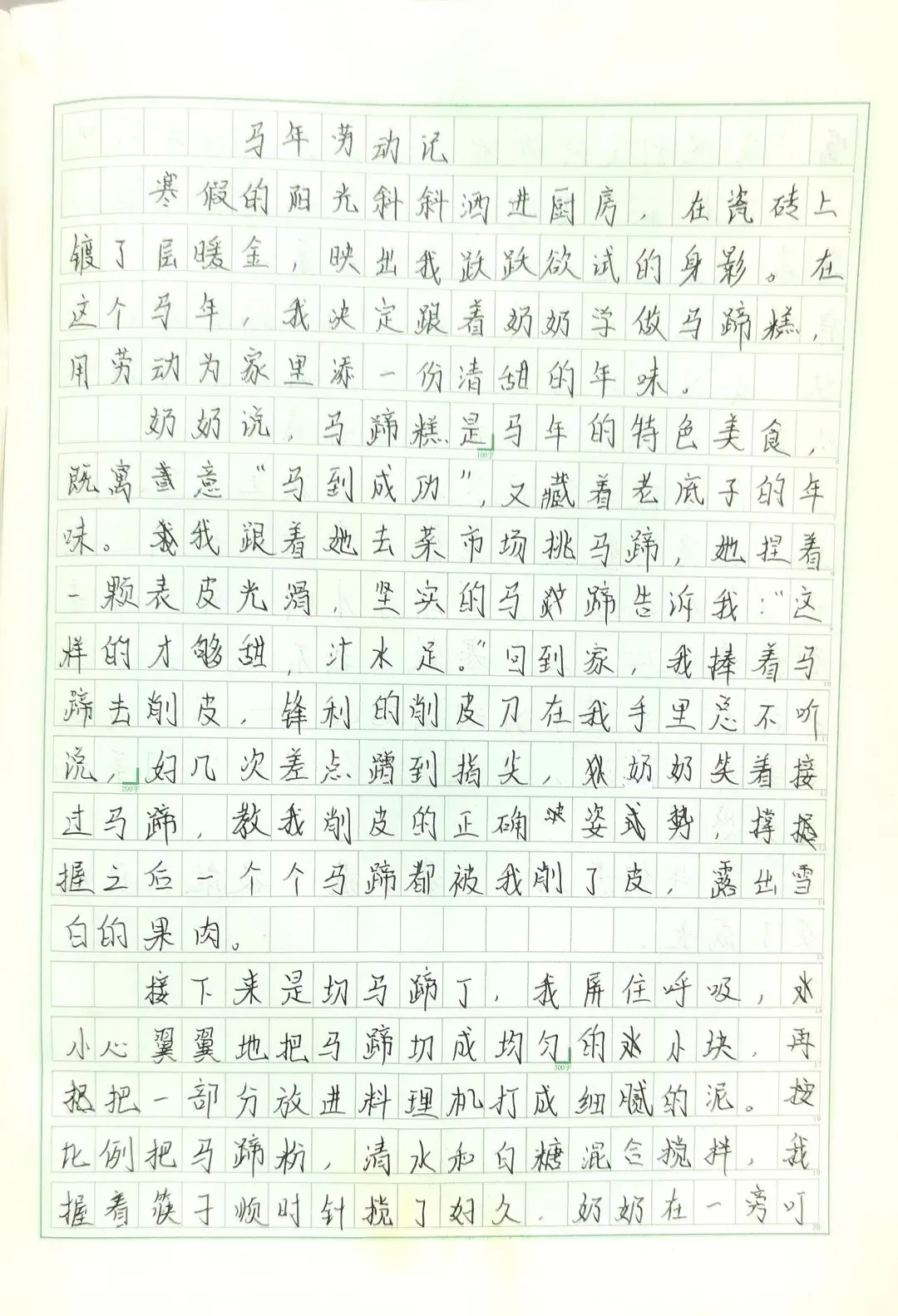 李锘在这个寒假跟着奶奶学会了做马蹄糕。从削马蹄、调粉浆到上锅蒸,她第一次知道,一块小小的糕点里,藏着这么多门道。