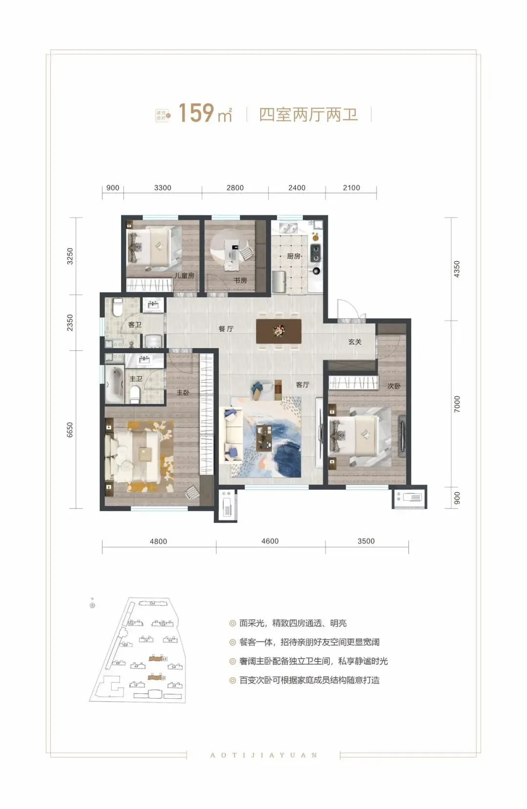 3、本宣传咨料所涉及的户型仅供示意参考,装修、家具、陈设等不属于交付范围。相同户型因楼栋、楼层、单元等差别,局部结构、面积等也可能不同,具体以政府部门核准文件及销售合同约定为准。