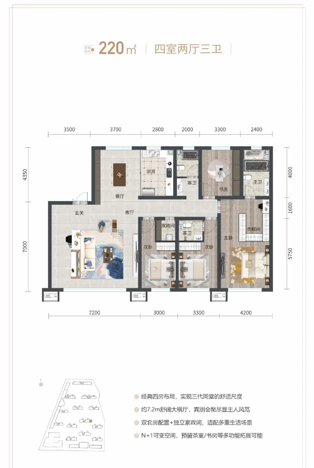 建筑面积约90-220㎡宽厅舒居户型?