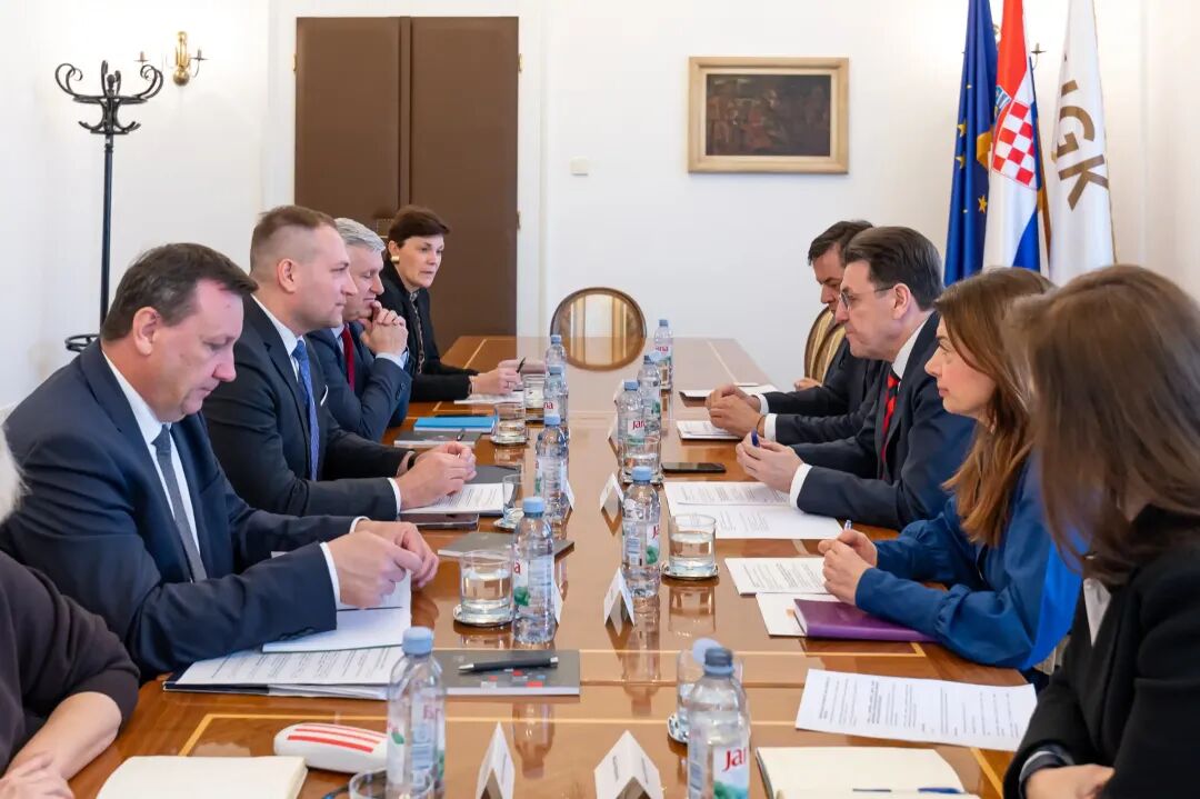 克罗地亚经济商会举行了工作会议,与会人员包括:克经济商会主席卢卡・布里洛维奇、副主席德拉甘・科瓦切维奇、农业与食品加工业部门主任耶莱娜・久戈米奇,以及克罗地亚政府副总理兼农业、林业和水利部部长达沃尔・弗拉伊契奇、国务秘书图戈米尔・迈达克。