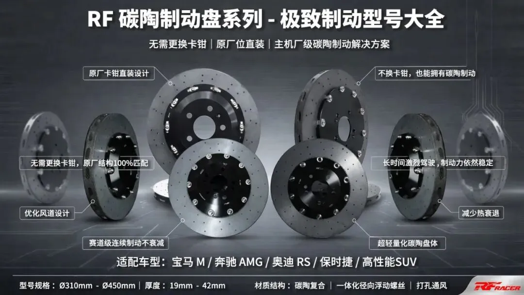 明天,一年一度的北京 AIT(All In Tuning)汽车改装展就要正式拉开帷幕了。在这个充满马力与激情的舞台上,RF RACER 带来了一个让所有追求极致质感的玩家振奋的消息:RF RACER 正式与国内碳陶基材领军品牌 道普安(STOPART)结成深度战略合作伙伴!这一次,我们同台亮相不谈花哨的噱头,只谈改装圈最稀缺的奢侈品—— 绝对的稳定与可靠。很多车友升级刹车,原本是为了更安全的驾驶体验。但现实往往很骨感:装配公差导致的踩刹车抖动、极端天气下刺耳的刹车尖叫、甚至跑山时突然的刹车发软……原本想花钱买享受,结果变成了无休止的“修车与折腾”。在制动这个关乎生命安全的系统里,最大的“专业”不是账面数据的极限,而是你在任何工况下踩下踏板时,它都能给你 恒定如一、毫不妥协的反馈 。基于这个极其严苛的市场痛点,RF RACER 与道普安一拍即合,正式开启了这场旨在重塑行业可靠性标准的战略合作。要做到极致的稳定,必须从材料源头和工程匹配双管齐下。道普安作为航空级碳陶基材的巨头,其提供的盘体从根本上杜绝了高温变形的风险,碳化硅(SiC)涂层更是确保了无论冷车还是热车,摩擦系数始终极其稳定。而 RF RACER 则在后市场端发挥了深厚的工程实力,通过专利级的高强度中心合桥设计与近乎苛刻的装配公差控制,将这块顶级的材料完美植入各种车型。因为对品控的极致严苛,我们才敢称为“战略大联盟”。装上就忘的安心感:「RF x 道普安官方套装碳陶刹车」重磅登场在明天的 AIT 展会上,我们将同台重磅展出这份合作的终极答卷—— 「RF x 道普安官方套装碳陶刹车」 。这套官方套装最大的魅力在于“装上就忘”。它极其安静,彻底终结了低速刹车的刺耳异响;它极其稳定,即便在赛道或长下坡经历千度高温,依然绝不抖动、绝不软脚。高达 80 万公里的免维护理论寿命,是对其工程可靠性最自信的背书。从此,你可以将全部精力放在驾驶本身,不再为制动系统操任何心。? 厌倦了反复折腾的改装老炮们,欢迎明天莅临 RF RACER x 道普安 展台。来现场亲眼见证,什么才是真正“专业且靠谱”的主机厂级碳陶制动方案!