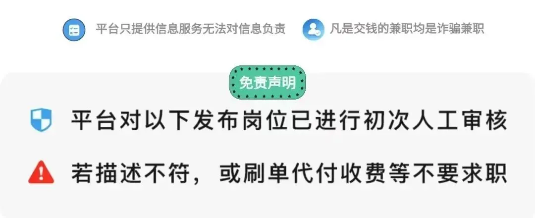 此岗位是用户投稿岗位若收押金或其他费用拉黑处理