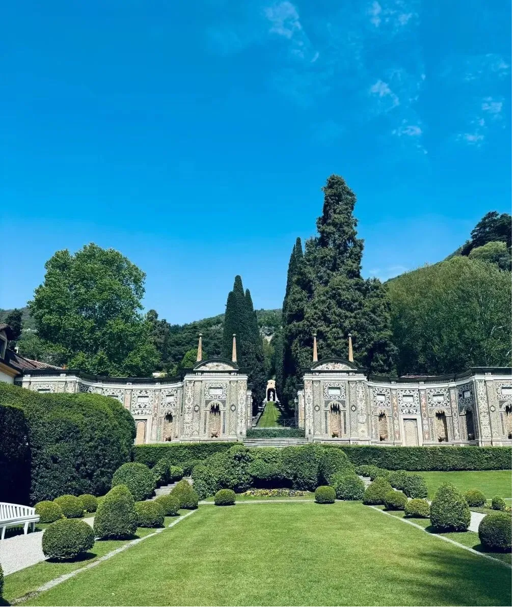 意大利约75%的国土是山地和丘陵,夏季平原闷热,而山坡上有海风与山风调节,成为造园的理想之地。为了适应起伏的地形,意大利人将山坡改造成多层台地,像阶梯一样顺着山势延伸,这就是著名的台地园。台地园的核心是借高差做文章:高层台地靠近别墅,适合俯瞰全园;低层台地空间开阔,用于举办活动。中轴线贯穿各层台地,两侧对称布置几何形花坛、喷泉和修剪整齐的柏树,形成严谨的秩序感。