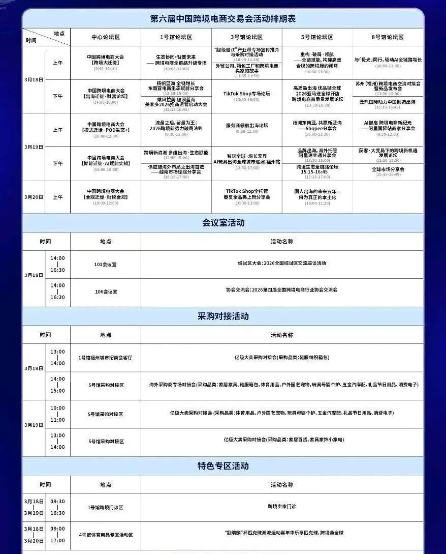备受瞩目的2026中国(福州)跨境电商交易会作为每年福州地区跨境电商行业人气火爆的展会活动,将于2026年3月18-20日在福州海峡国际会展中心举办。这次展会不仅是一场简单品牌集结,更像是一次关于“跨境电商”的年度盛典。本届展会吸引亚马逊全球开店、eBay、沃尔玛全球电商、TikTok Shop、SHEIN、TEMU、阿里巴巴国际站、全球速卖通、快手海外SnackVideo、中国制造网、淘宝出海、敦煌网、Shopee、日本乐天、Coupang、美客多、Wayfair、eMAG、OTTO)Cdiscount、Wildberries、Shoplazza、168Mall.Pigu、Bol.com、Daraz、Jumia、JoomPro.KiKUU、Voghion、Ozon、Google Ads、Shopify等60多个跨境电商平台参加将带来各平台最新政策解读,以及面向卖家的扶持计划。距离开幕仅剩6天,小编特地整理了逛展攻略,或许能给你一点新思路,收藏打卡不迷路,收获满满!