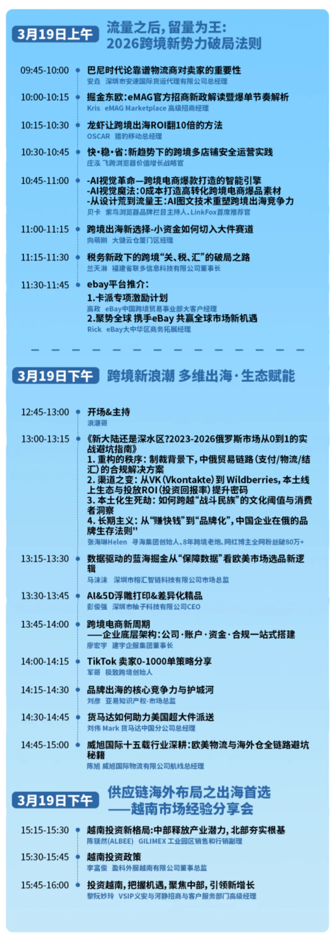 1场大会,3天主会场,5大主题分享,100+行业大咖亲临!涵盖蓝皮书发布、产业带/大卖对接、品牌出海、跨境门诊等内容,适合团队“学习+资源对接”两手抓,为中国品牌出海指明方向