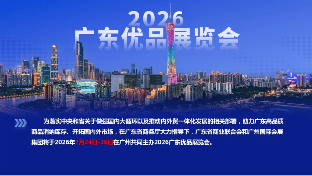 第二届广东优品展览会将于7月24—26日在广州盛大启幕!作为全国首个 “内外贸融合” 标杆展会,本届展会全面升级扩容,以更强的产业集聚力、更优质的资源对接平台,为企业搭建产销对接新桥梁,解锁粤贸发展新机遇。