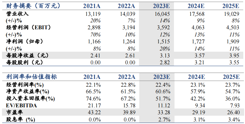 投资建议:维持2023/24/25年EPS盈利预测至3.13/3.57/3.95元。维持目标价150元,目前股价对应2023年34X,维持“增持”评级。