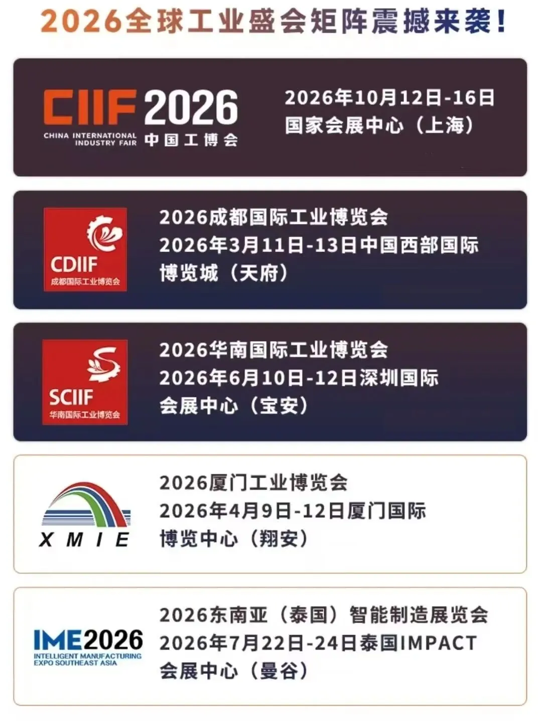 2026年10月12日—10月16日,为期5天,是国内工业领域年度重磅的国家级展会,每年秋季固定在上海举办,本届为第26届中国国际工业博览会。