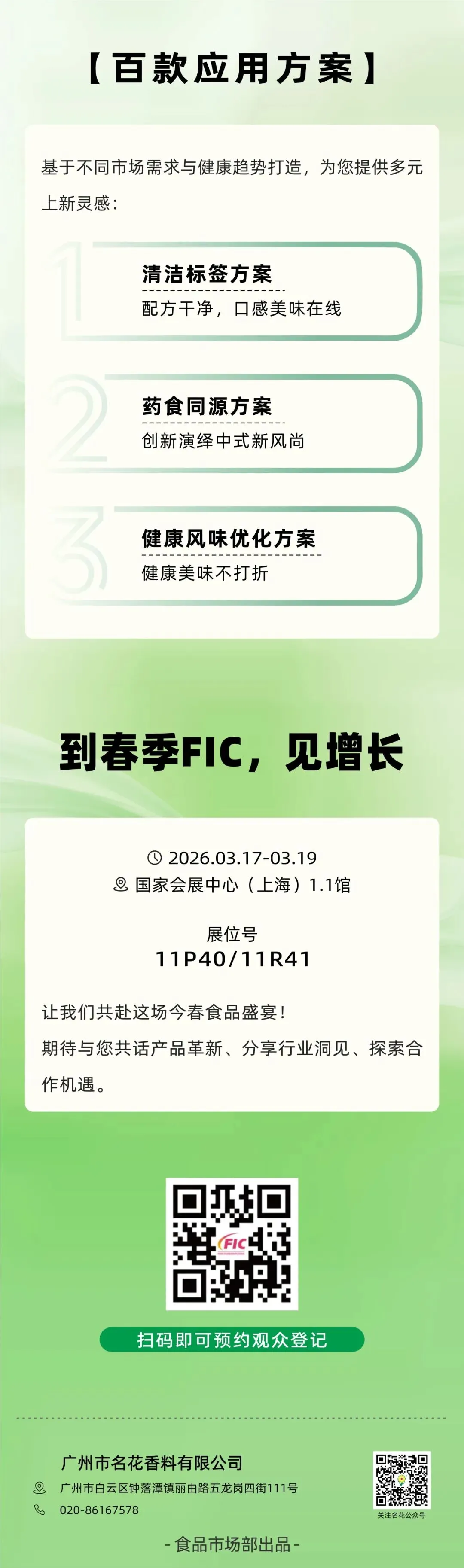 展会预告 | 尝「味」来,见增长 —— 名花香料邀您共赴FIC 2026风味创新之旅