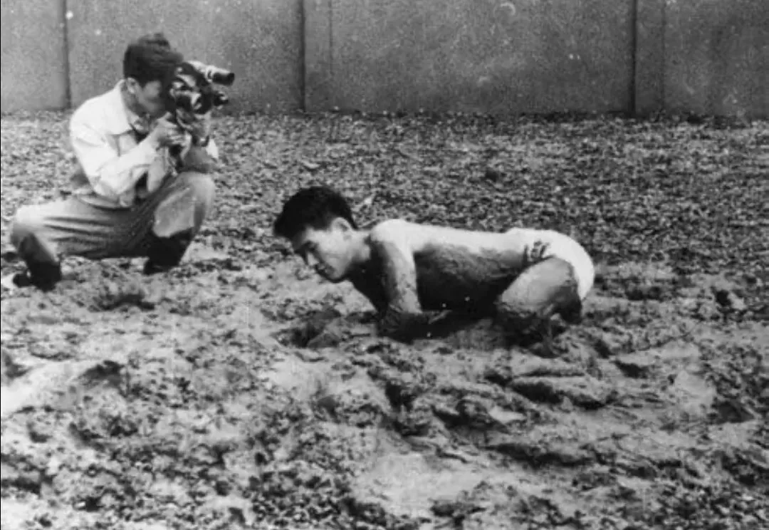 在物派之前,日本还有一个更早的前卫艺术团体——具体派(Gutai)。1954年成立的具体派,比美国的波普艺术还早了两年。白发一雄走进泥潭踩踏、村上三郎穿越纸墙——这些作品将行为与绘画融为一体。