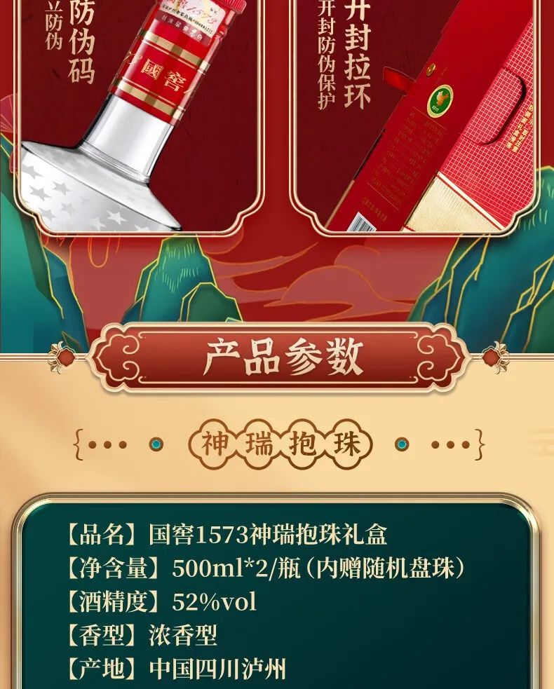 国窖1573官方 浓香型白酒 高度白酒 送礼收藏礼盒 52度 神瑞抱珠礼盒 500ml*2瓶+盲盒