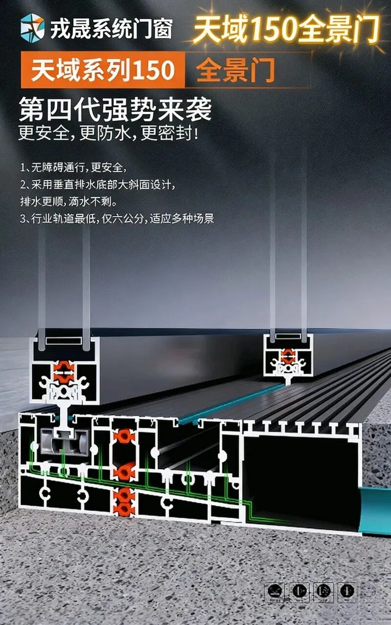 - 戎晟全景门:极窄边框设计搭配超大通透视野,无缝衔接室内外空间,适配现代家居、商业空间等多元场景,兼具颜值与实用性,成为打卡热门。