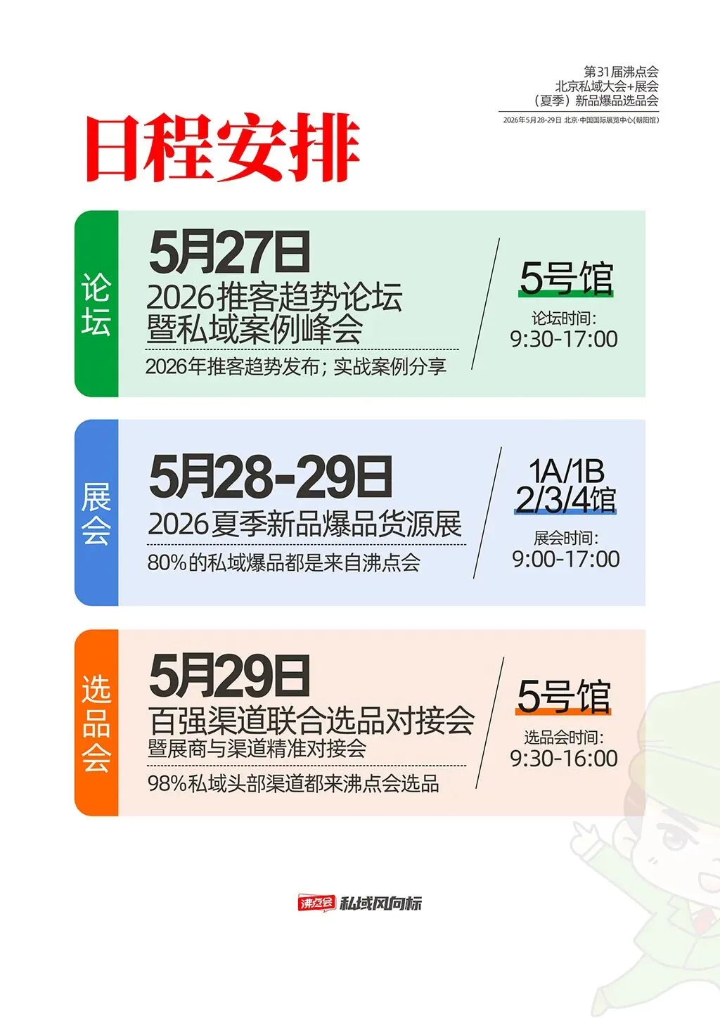 2026年私域风口已至,想要抢占北方私域市场、高效对接优质新渠道,北京私域展会与北京新渠道展会无疑是核心突破口。2026第31届沸点会北京私域爆品展暨选品大会,既是业内认可的北京私域展会标杆,也是北方极具影响力的北京新渠道展会,将于5月28-29日在北京·中国国际展览中心(朝阳馆)盛大启幕。这场北京私域展会联动北京新渠道展会资源,汇聚千企万品与头部渠道,更是私域从业者对接资源、拓展市场、突破业绩的核心机遇,精准匹配行业搜索需求。