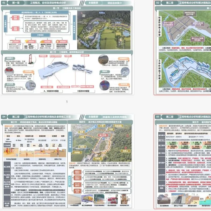 当前行业竞争日益激烈,技术标制作都在“卷”,尤其在浙江、江苏、安徽、云南等地。技术标制作既是机械性重复劳动工作,又需要编制人员广泛的知识面和较强专业技术。在高度同质化的今天,投标人员日常需要多收集素材,为编标策划、编制做准备:技术过硬: 专业知识扎实,熟练运用各类文字及图片处理软件。最终目标,是制作一份全面响应招标文件要求、显著提升标书档次的高质量技术标。目前施工标书排版主要以Word、PPT、ID呈现,部分编标人员已经开始使用AI等智能化制作工具。面对网络大量的标书模版,作为编标人需要搜集对自己有用的素材作为日常的积累,无论是图片还是文字,学会如何精简,学习同行人配色、排版等本标书合计1180页,采用A4版Word格式,普通图文标书,中建内部制作,设计方案、施工方案内容详实,值得借鉴学习!第一节 投标踏勘现场实景VR 第二节 承建优势 第三节 项目整体认识 第四节 编制依据 第五节 工程概况 第六节 设计概况 第七节 环境概况第一节 本工程施工部署特点及施工目标 第二节 施工顺序 第三节 施工总体部署思路 第四节 综合展馆专项施工部署 第五节 工程组织架构 第六节 施工准备工作 第七节 主要施工方案的选择第三章 施工方案:各分部分项工程的主要施工方案与技术措施、季节性(高温季节、冬雨季、春节施工)施工措施及方案第一节 主要施工方案总体概述 第二节 定位和测量放线施工方案 第三节 基础土方开挖及外运施工方案 第四节 PHC 管桩施工方案 第六节 钻孔灌注桩施工方案 第七节 钢筋工程施工方案 第八节 模板工程施工方案 第九节 混凝土工程施工方案 第十节 脚手架施工方案 第十一节 砌体工程施工方案 第十二节 地下室防水施工方案 第十三节 屋面工程施工方案 第十四节 外墙保温施工方案 第十五节 装饰装修施工方案 第十六节 机电安装施工方案 第十七节 塔吊工程施工方案 第十八节 人货电梯施工方案 第十九节 本工程季节性施工特点分析 第二十节 高温季节施工措施及方案 第二十一节 冬季施工措施及方案 第二十二节 雨季施工措施及方案 第二十三节 春节施工措施及方案第一节 本工程分包管理特点分析 第二节 对分包的管理措施 第三节 对分包的工期控制措施 第四节 对分包的质量控制措施第五章 管理体系与措施:确保工程质量的管理体系与措施第一节 工程质量目标及特点分析 第二节 质量保证管理体系 第三节 质量管理制度 第四节 阶段性质量控制要点及保证措施、 第五节 分部分项工程质量保证措施 第六节 质量通病及防治措施第六章 管理体系与措施:确保安全生产、文明施工的管理体系与措施.第一节 安全生产、文明施工目标及特点分析 第二节 安全生产、文明施工的管理体系 第三节 安全生产、文明施工的管理措施 第四节 安全生产、文明施工专项管理措施 第五节 环保施工专项管理的措施 第六节 分阶段安全、文明、环保施工的重点 第七节 会展中心绿色建筑施工方案 第八节 定点拍摄及施工现场视频监控方案 第九节 消防、保卫方案 第十节 应急预案第一节 本工程节点工期要求 第二节 施工总进度计划及说明 第三节 分包进场计划 第四节 施工进度网络计划 第五节 施工进度计划保证措施第一节 本工程资源配备特点分析 第二节 主要物资材料使用计划 第三节 主要机械设备使用计划 第四节 测量、实验仪器配置计划 第五节 劳动力投入计划 第六节 办公设施设备配备承诺、投入计划与措施第一节 场地特征及总平布置特点分析 第二节 本工程施工总平面布置原则、依据 第三节 本工程施工总平面布置体系、制度 第四节 项目现场现状及整体布置情况 第五节 各阶段区域划分标准及组织 第六节 各阶段现场平面布置图 第七节 临时设施的设计与布置 第八节 临时用水平面布置 第九节 消防设施布置 第十节 临时排水、排污设计及布置 第十一节 现场临时用电布置 第十二节 现场临时用地表 第十三节 总平面管理第十章 工期、质量目标及重难点:质量、安全目标相应措施第一节 质量安全管理目标及特点分析 第二节各专业创奖目标及保证措施 第三节质量目标保证措施 第四节安全目标保证措施 第五节文明施工管理与措施第一节 工程特点、重难点分析及应对措施 第二节 钢结构施工方案 第三节 金属屋面施工方案 第四节 幕墙施工方案 第五节 场馆地面承载力,地坪强度,平整度质量控制措施 第六节 机电专业与一期已建工程配套衔接方案 第七节 高支模施工及主体相邻部分施工影响保障方案 第八节 机电安装工程专项质量保证方案 第九节 与土方开挖、基坑支护单位施工配合方案 第十节 国际会展中心二期施工总承包迎检保障方案 第十一节 BIM 技术综合应用 第十二节 施工总承包管理方案第十二章 工期、质量目标及重难点:赶工保障措施方案第一节本工程赶工特点分析 第二节赶工组织机构 第三节工期延误因素分析及应对措施 第四节赶工总体部署 第五节工期履约的保证措施 第六节工期追补措施 第七节夜间施工方案第十三章 质量施工方案:投标人根据施工图纸合理制定工程质量保证措施,分别从人材机、安全文明、能否达到申报“鲁班奖”的要求等方面阐述第一节本工程创奖特点分析及目标 第二节 “鲁班奖”申报标准 第三节确保“鲁班奖”的质量管
