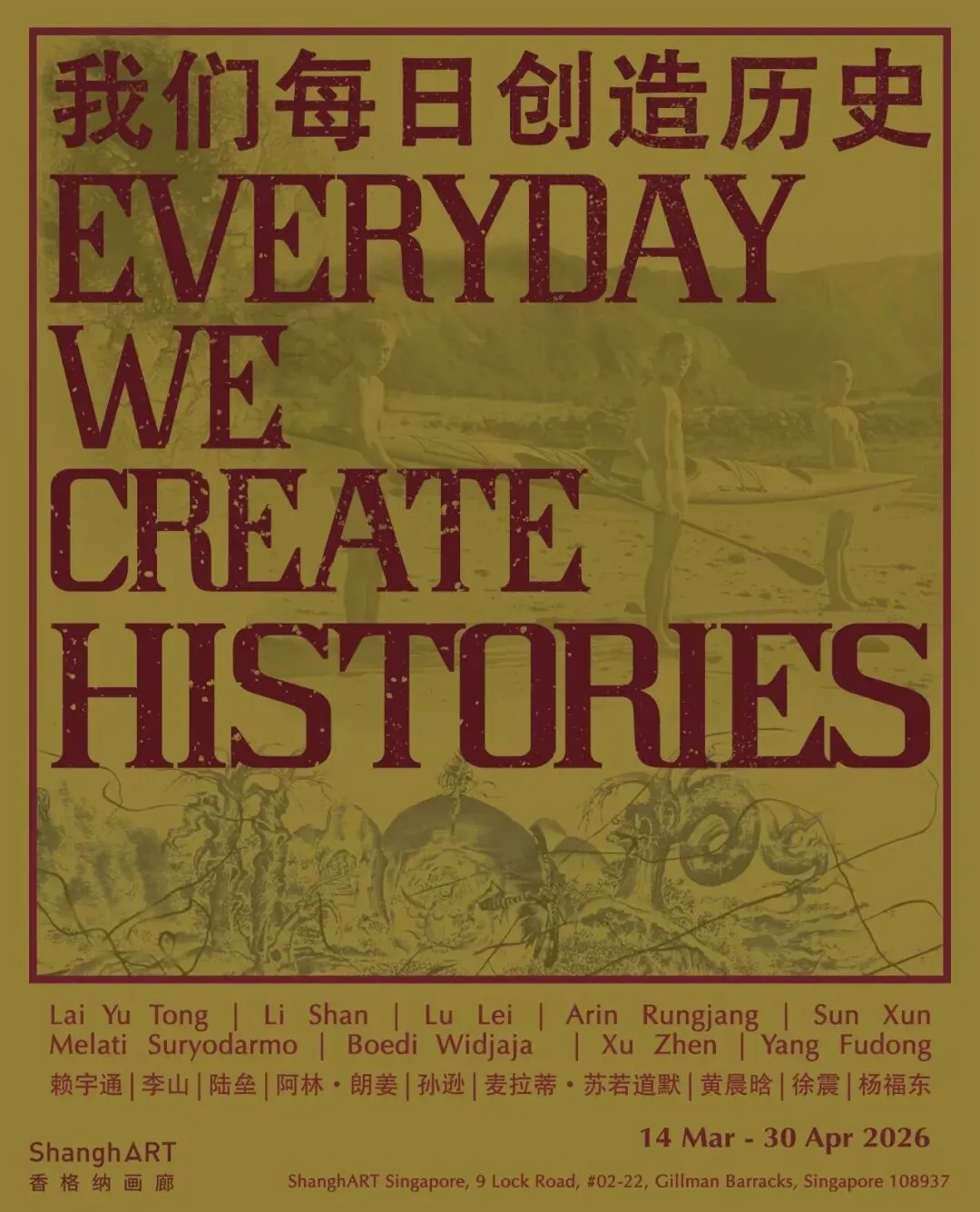 香格纳新加坡荣幸呈现展览“我们每日创造历史”,汇集九位艺术家的作品,他们以不同的方式审视、建构并质疑“历史”的概念。展览横跨绘画、摄影、雕塑与动画等媒介,为观众提供理解历史的多维视角。展览将艺术家定位为时代的观察者,也将艺术创作视为一种承载记忆、引发思考的文化实践。