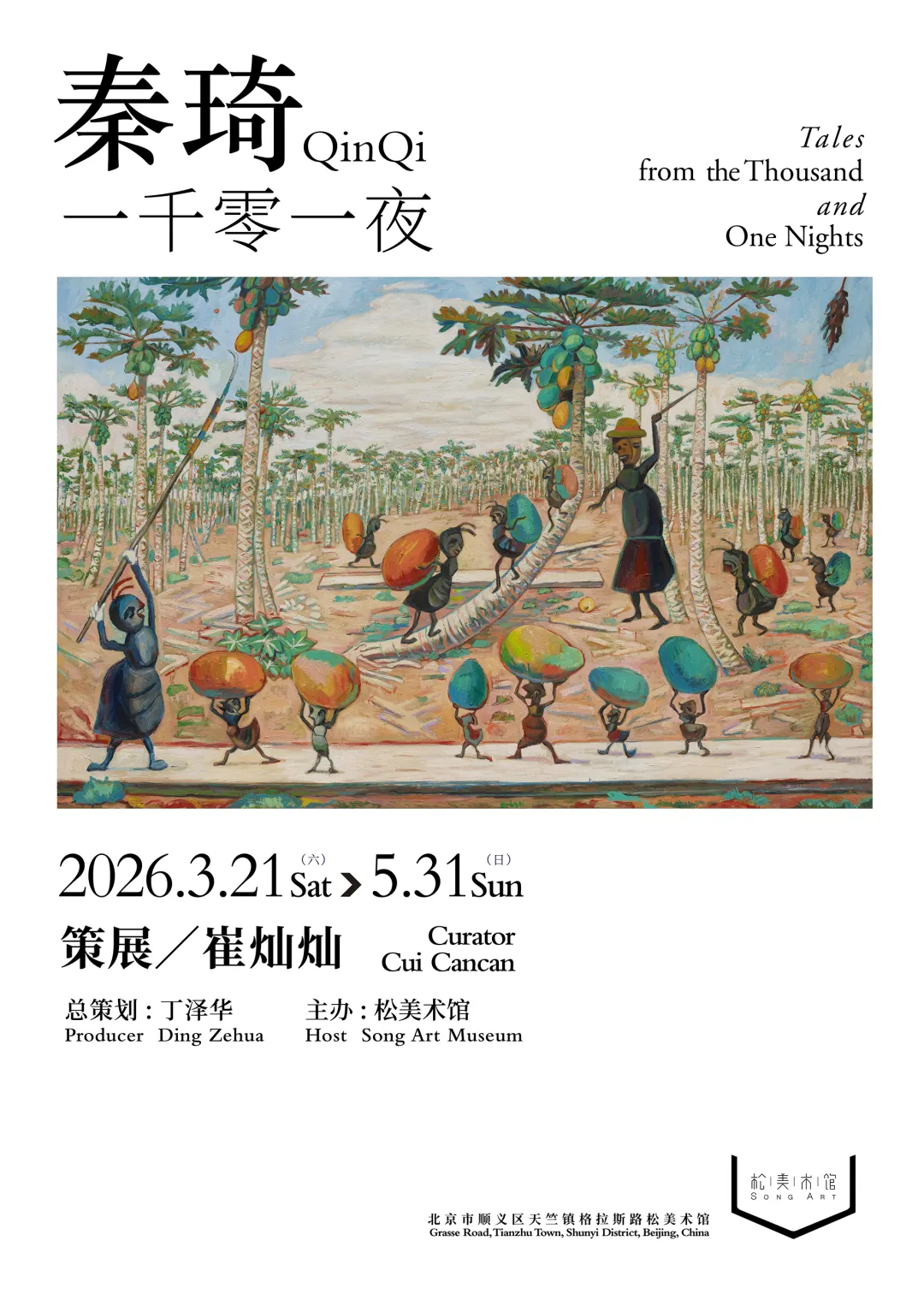 2026年3月21日,松美术馆将隆重举办艺术家秦琦的回述性个展“一千零一夜”。展览由策展人崔灿灿策划,亦是秦琦在北京举办的首次美术馆的大型个展,呈现艺术家自2011年至今的60余件代表作。展览分为9个单元,讲述了9个不同时空的故事,呈现秦琦艺术创作中最为显著的几个特征:民间故事、风情之味、动物王国、都市摩登、新人物画等。