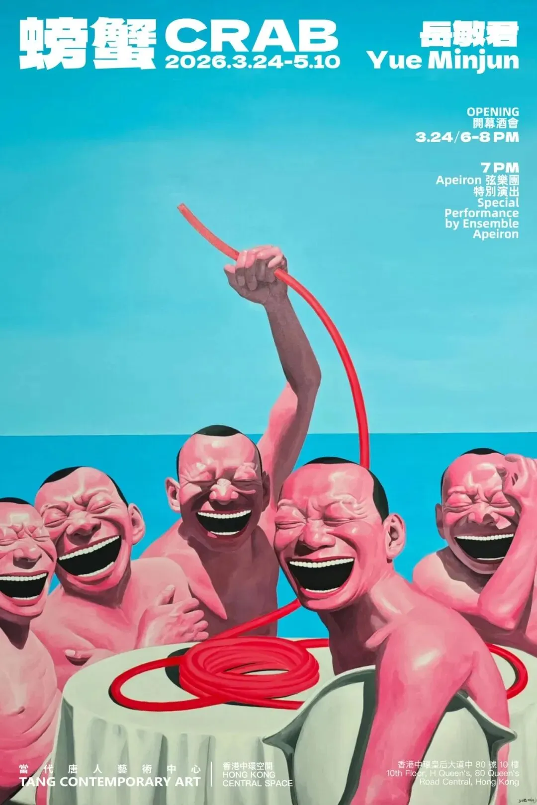 当代唐人艺术中心香港中环空间荣幸宣布,将于2026年3月24日至5月10日呈献中国知名艺术家岳敏君的最新个展“螃蟹”。展览回溯其过去三十年的创作历程,系统地呈现主要的系列作品,并同步揭晓拓展其独特视觉语言之新作。