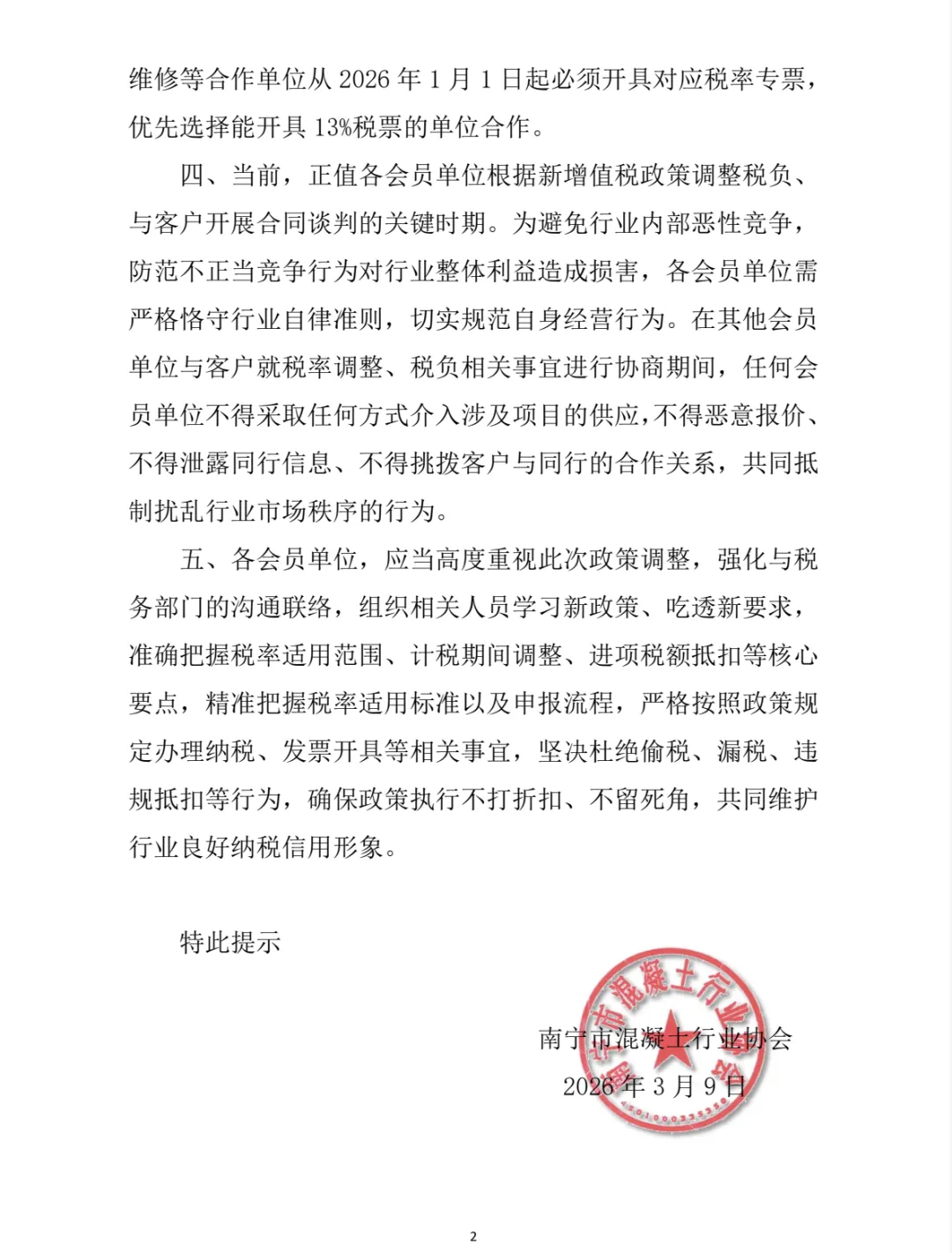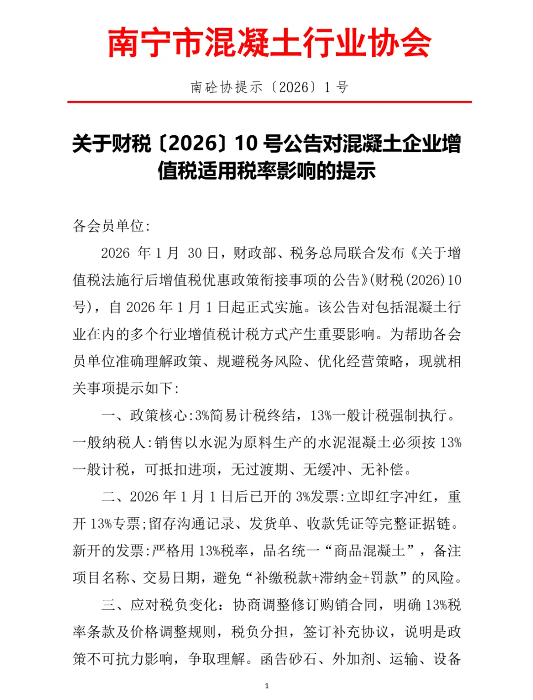 南宁市混凝土行业协会关于混凝土企业增值税适用税率影响的提示