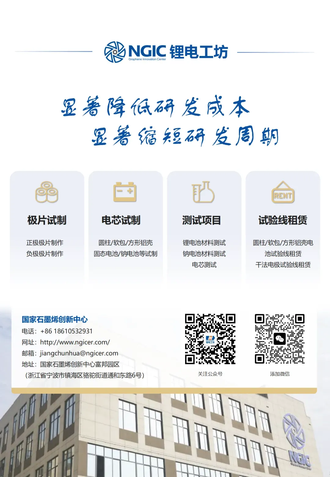 国家石墨烯创新中心结合国家、地方政府、国内外大型企业的战略需求,投资超1亿元,打造锂电池技术服务平台。平台建设总面积约5900㎡,总产能0.1GWh,提供正负极片、方形铝壳电池(100Ah以上)、全极耳大圆柱电池(32140/4680/4695/46120/46145)、软包电池(2-120Ah)的试制服务,实现石墨烯涂层集流体生产和代工。灵活共享产线,降低研发成本,加速技术落地!