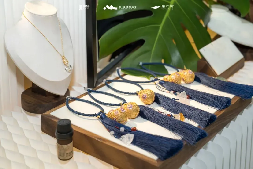 现场备受关注的疗愈产品,包括各种进口精油产品、中式药材精油、香薰蜡烛、精油香水、颂钵及水晶钵、卡牌、微压氧舱、科技头环、营养保健食品等,以及各种疗愈服务培训与门店赋能陪跑服务,都是众多美业、大健康产业机构负责人想要引进和合作的项目。