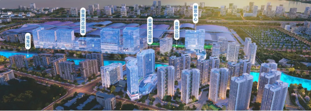 以它为核心,周边正在崛起一座“会展新城”。按照规划,这里将形成“双岛、三区、多廊道”的空间结构。北侧原本规划的会议中心、科技馆被重新选址,腾出一平方公里土地打造成“西湾都心”。