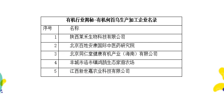 何首乌作为食药同源物质,产业链已从传统的中药饮片,延伸至食品饮料(固体饮料、粉剂、配料等等)、保健产品等多个领域。目前,经过中国有机认证的何首乌生产加工企业共有5家,具体如下: