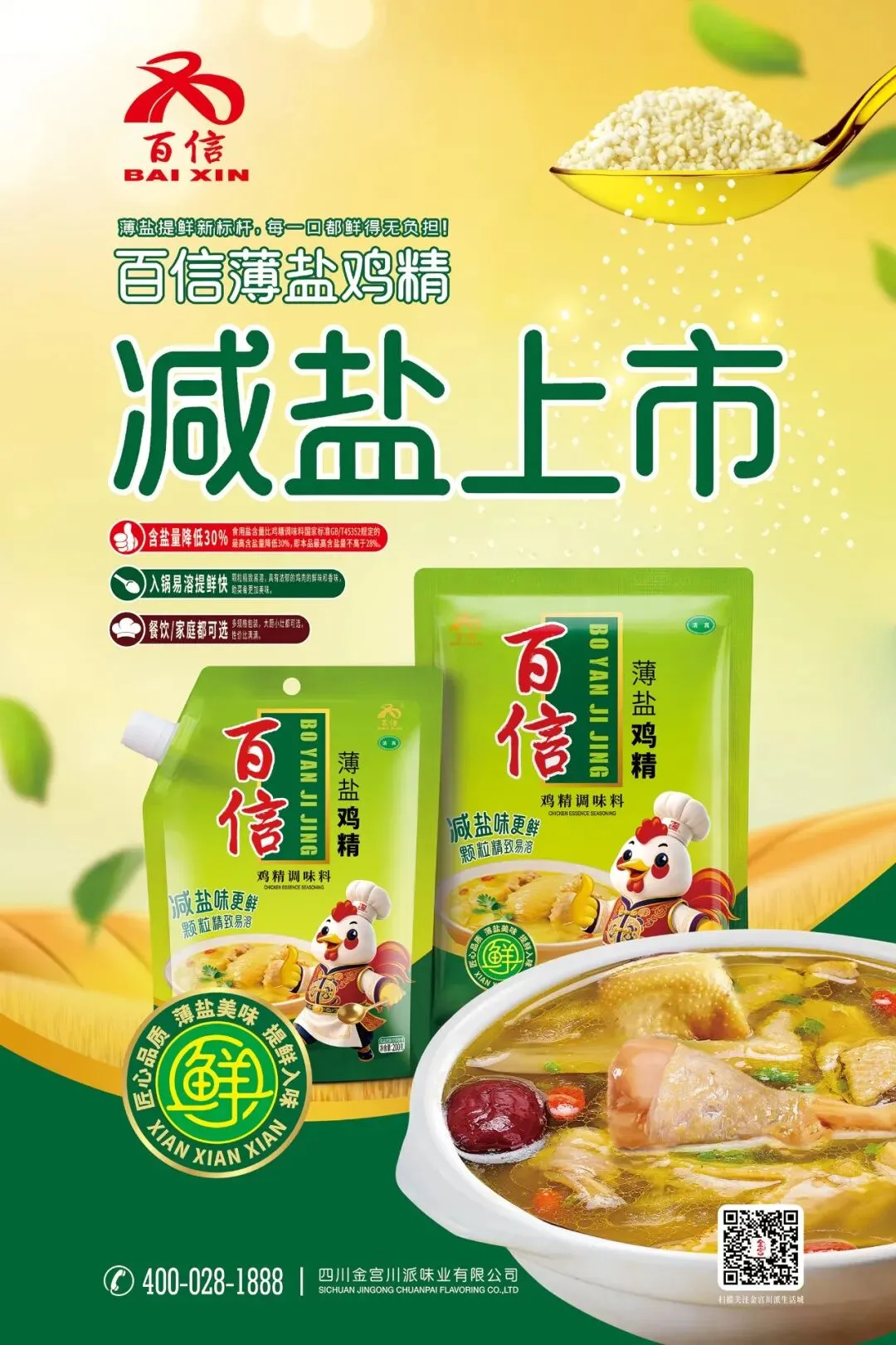 薄盐提鲜先锋:全新推出百信薄盐鸡精,精准拿捏现代人健康调味的新需求。