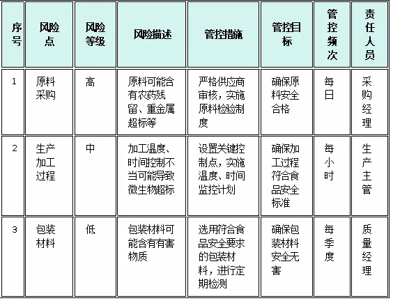 针对识别出的高风险点,制定详细的管控措施,如设置关键控制点(CCP)、实施监控计划等。