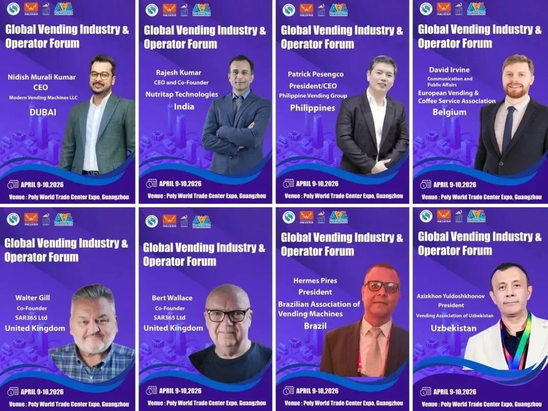 国际权威背书:欧洲自助售货及咖啡服务协会(EVA)、乌兹别克斯坦售货机协会、巴西自助服务与技术协会等权威行业组织,携手英国、印度、澳大利亚、菲律宾、迪拜等国家和地区头部运营商,共同确认出席2026全球售货机运营商大会。多国协会的深度参与,标志着欧亚两大市场迎来高层对话与战略链接。与此同时,英国、印度、澳大利亚、菲律宾、迪拜等国家和地区头部运营商携超60年行业经验、4500台运营规模及覆盖海湾六国的分销网络强势助阵,全球智慧零售最前沿洞察即将在广州交汇。