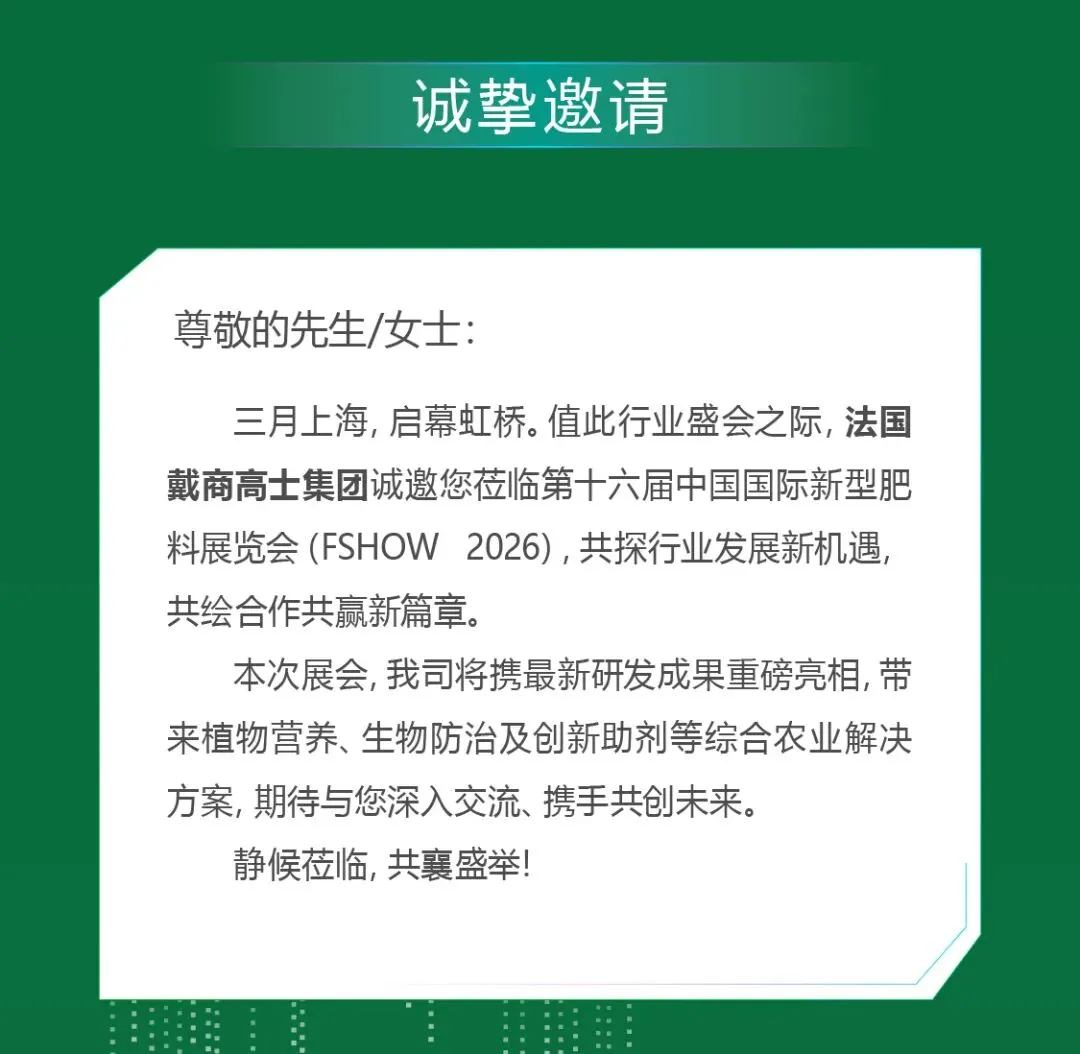 展会邀请 | 3月上海,百年企业法国戴商高士集团与您共话农业新未来