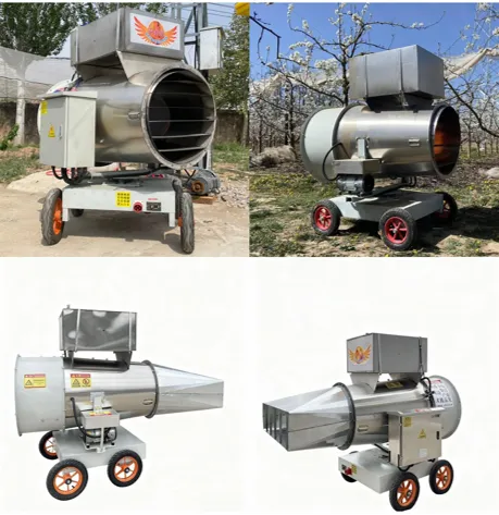 高空款智能式暖风防霜机采用"逆温扰流+燃油增温"双重防霜技术,通过6-8米高处的风机将逆温层暖空气(比地面高4-6℃)吹向果树,提升低空温度2-3℃;逆温不足时可启动燃油辅助加热。实现智能化防霜保护。