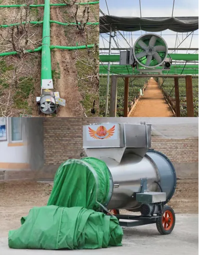 覆盖高效:360°旋转出风口,快速覆盖广阔区域,适合规则开阔大棚。