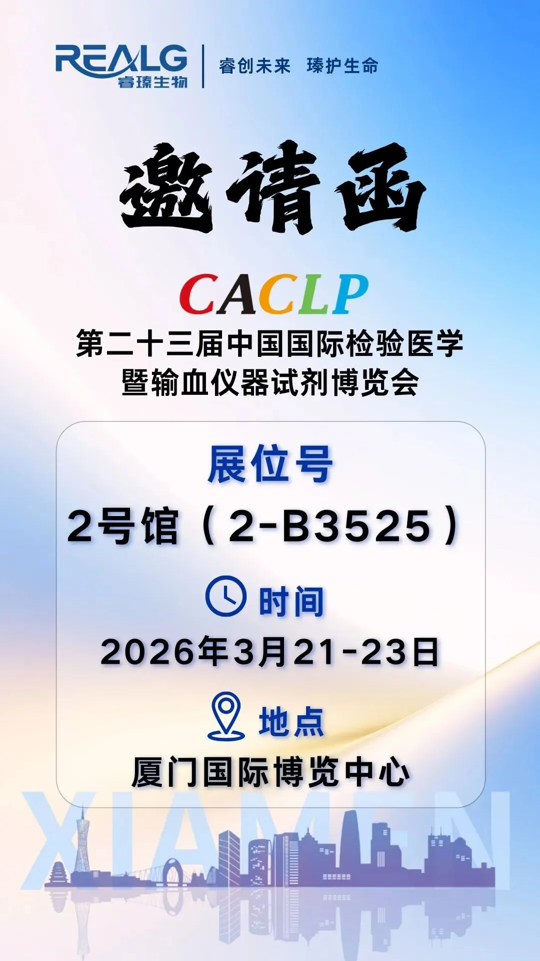 春风送暖,共赴鹭岛之约。第二十三届中国国际检验医学暨输血仪器试剂博览会(CACLP),将于2026年3月21日至23日在厦门国际博览中心隆重举行。
