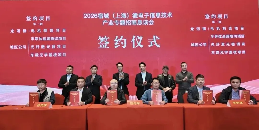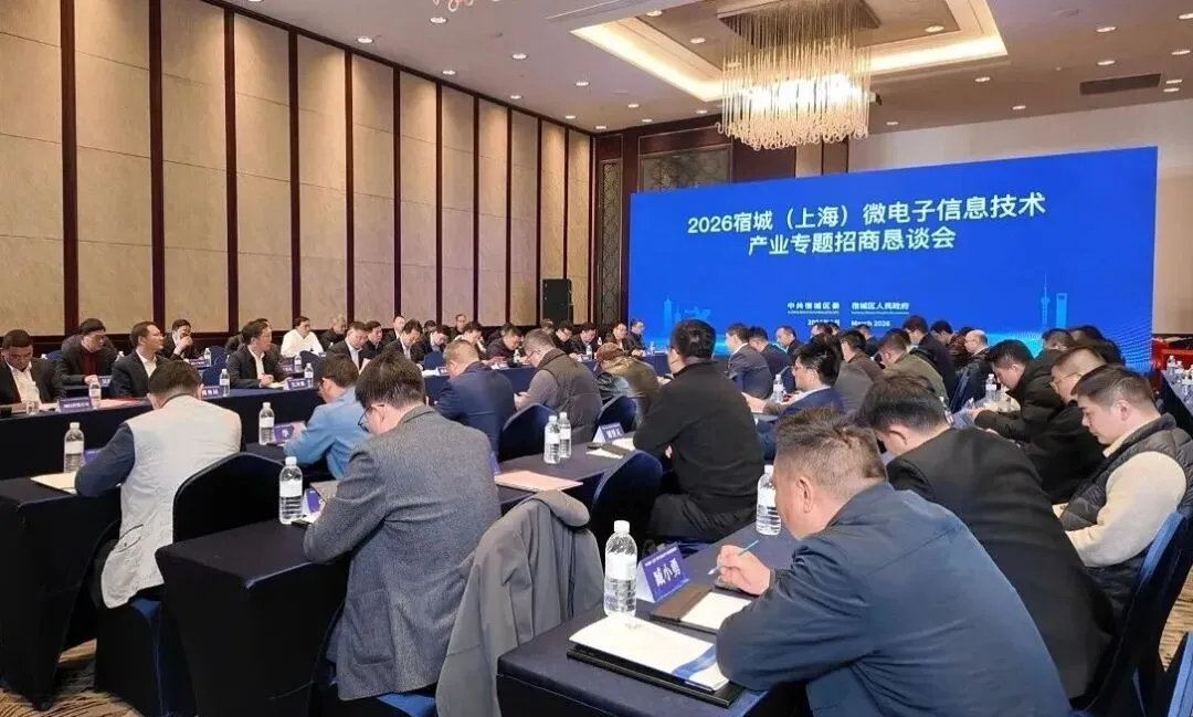3月12日,2026宿城(上海)微电子信息技术产业专题招商恳谈会在上海成功举办,来自长三角区域的近50家企业齐聚一堂。会上集中签约项目12个,计划总投资额30亿元,其中10亿元项目1个,涵盖半导体封装、晶圆切割、智能机器人等重点领域。随着一批优质项目的成功落地,进一步丰富了宿城微电子信息技术产业链条。