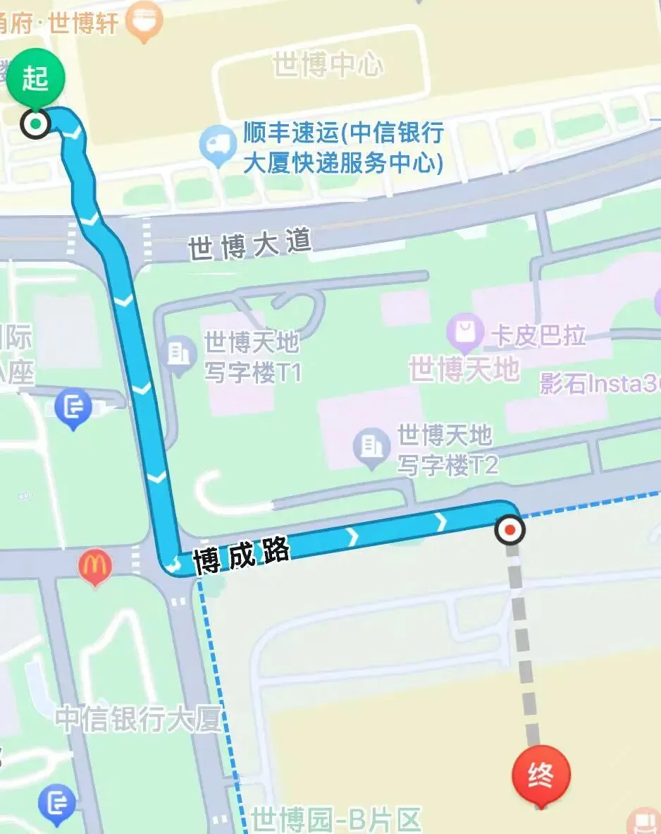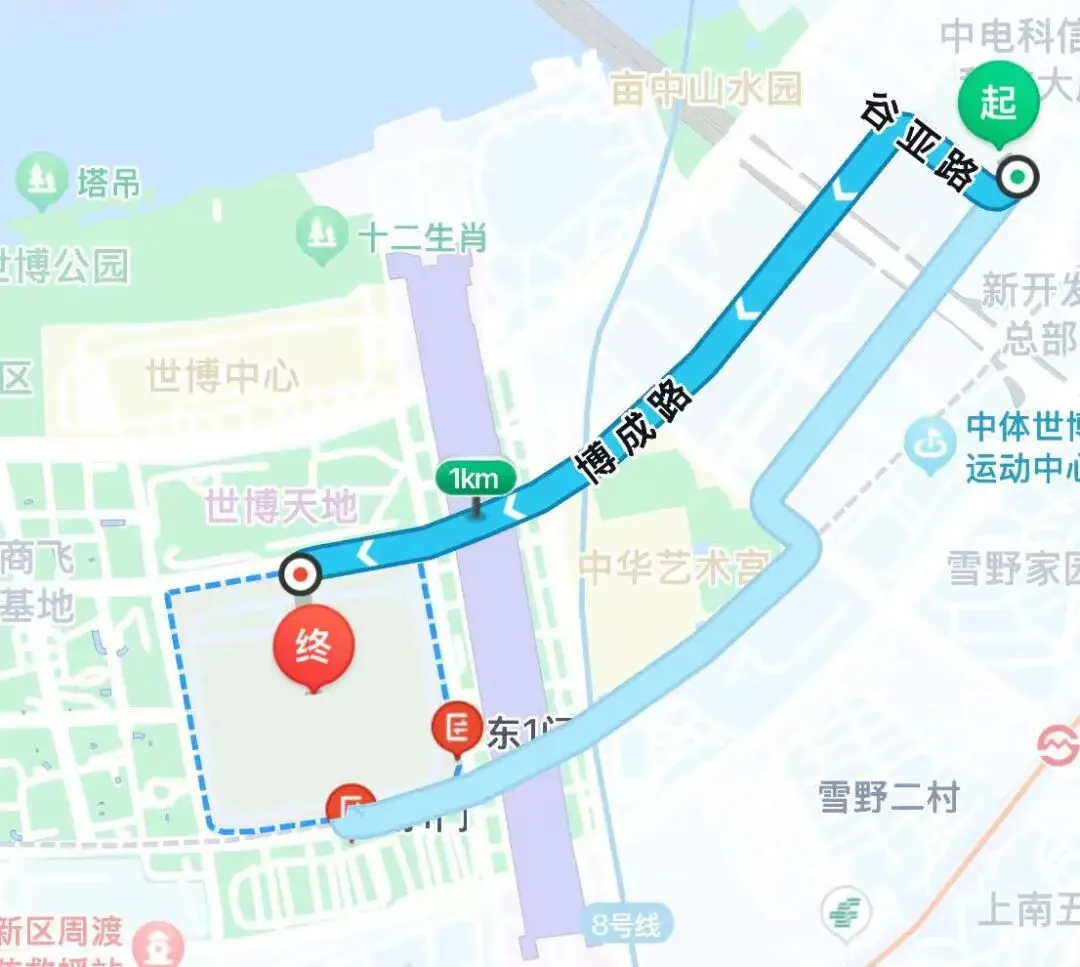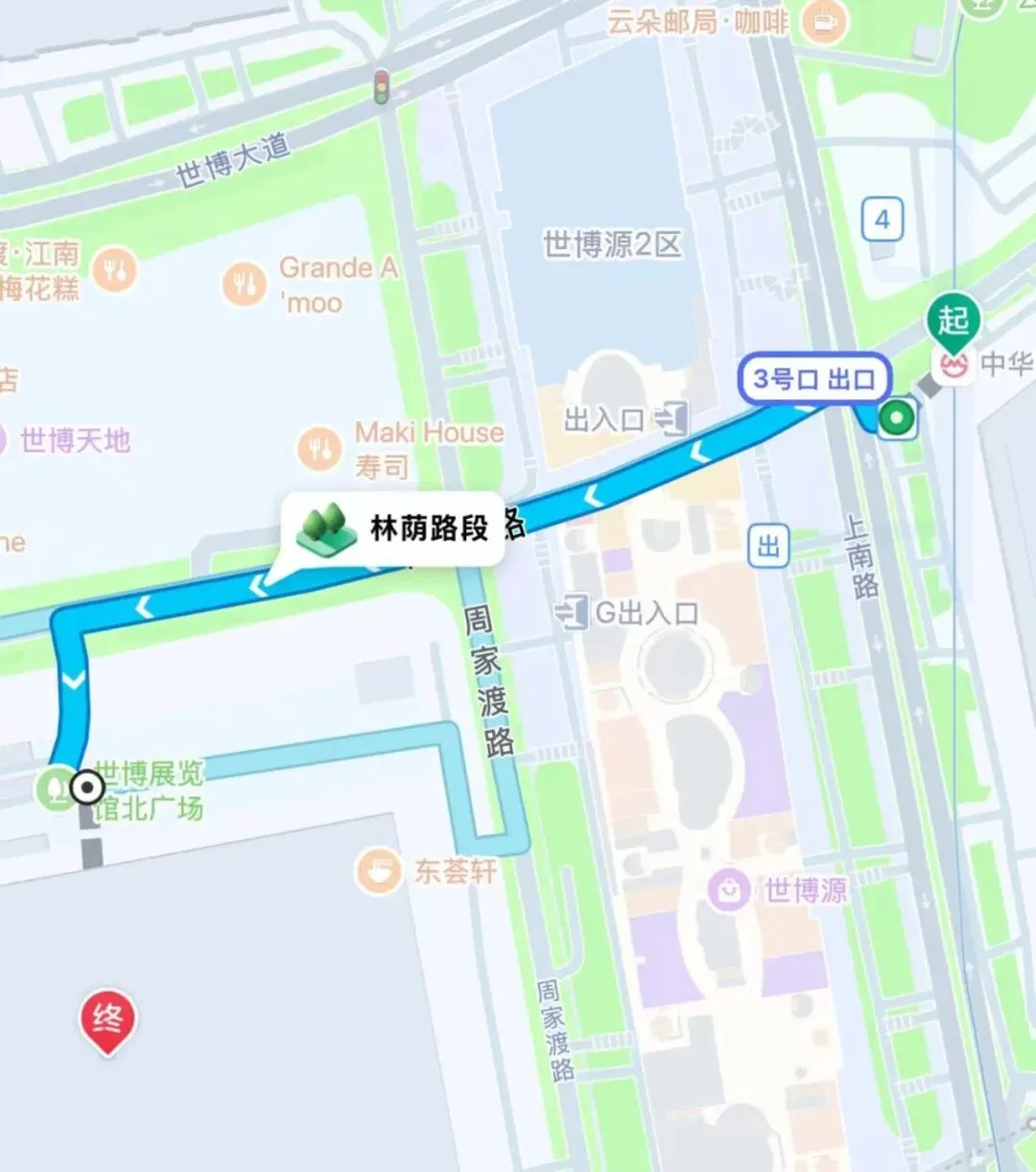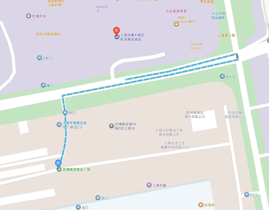 距展馆820米,步行路程约13分钟