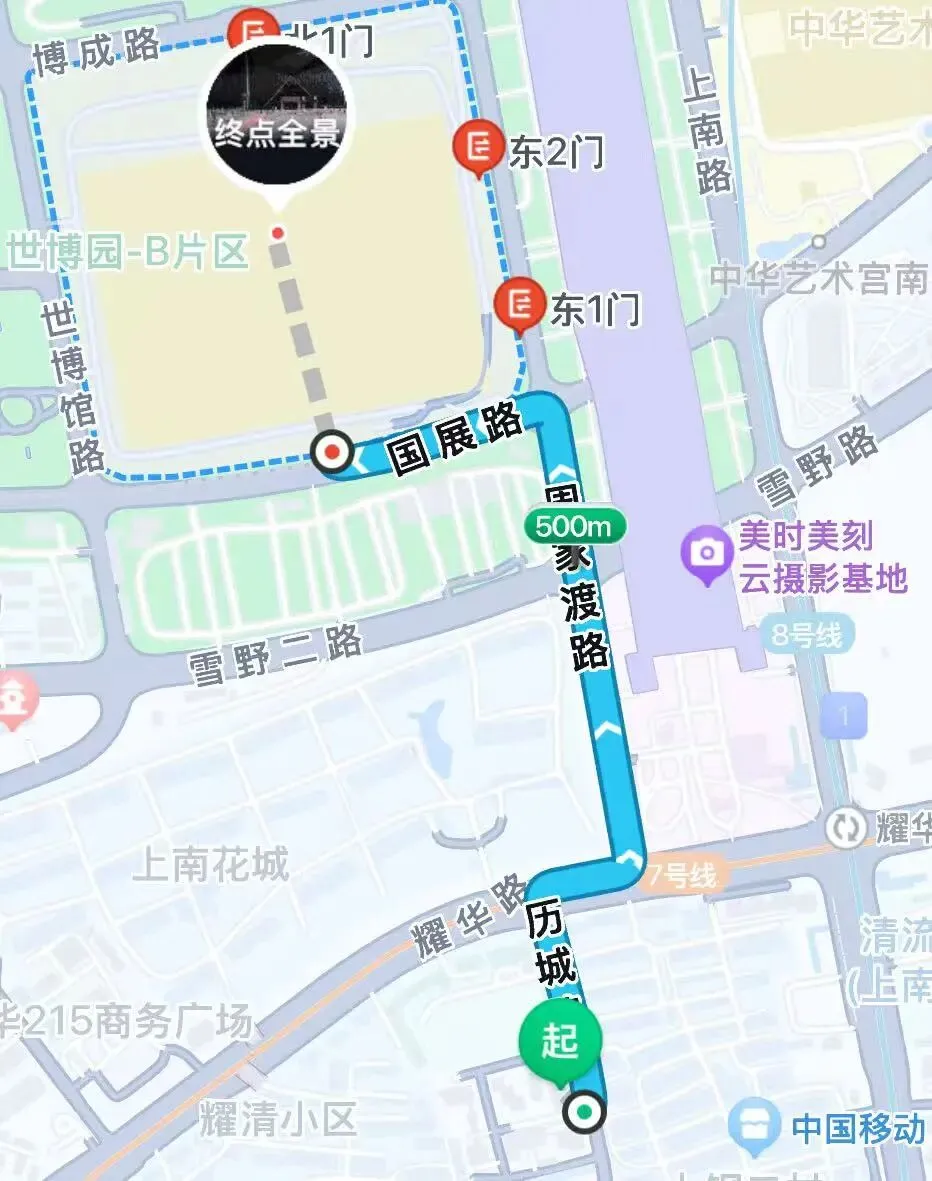 距展馆495米,步行路程约8分钟
