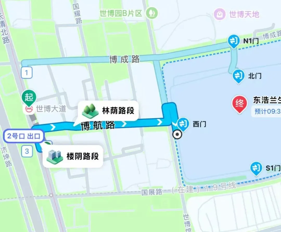 →沿博成路向西步行约430米到达展馆