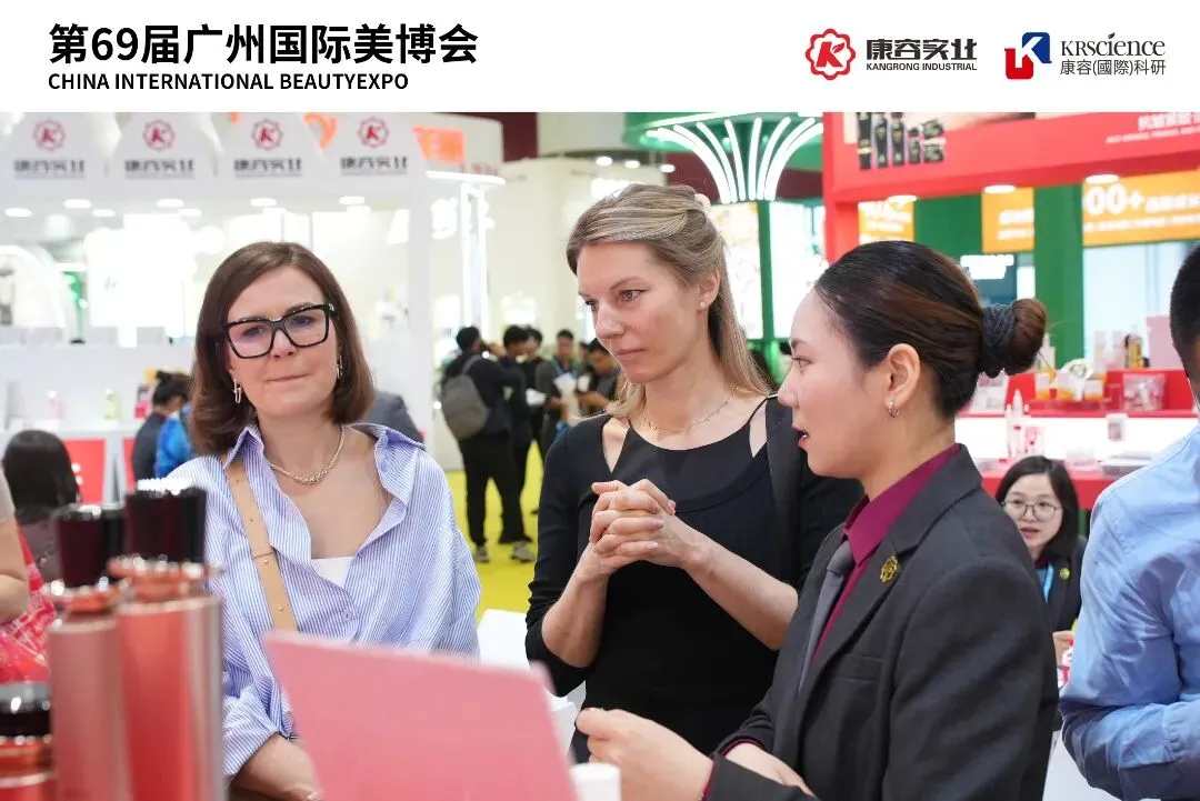 3月12日,第69届广州美博会在火热氛围中圆满收官。回顾三天展期,康容展位3.1-E05始终处于人流风暴眼——咨询台前围满观众,签约捷报频传。