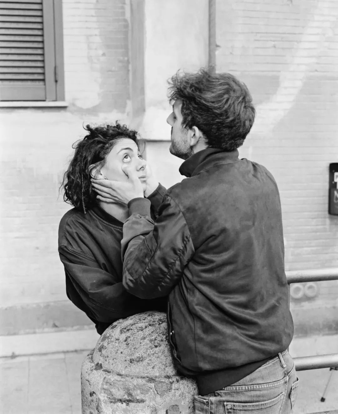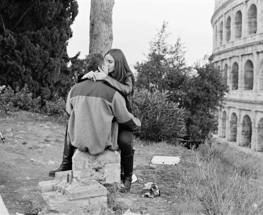 有些场景是没有预先计划的,是在公共空间根据对真实事件的观察即兴创作的,然后我们会在现场与人们合作进行重演/重现(例如,两个男人打闹,或者在斗兽场旁接吻的情侣)。