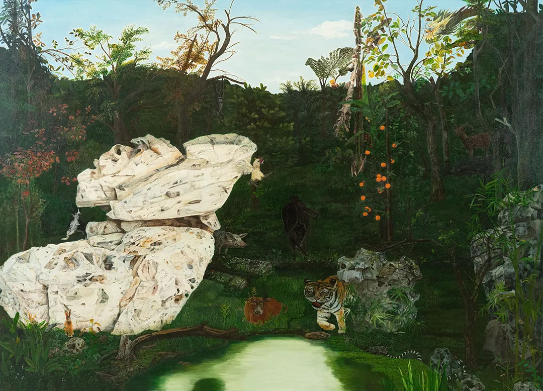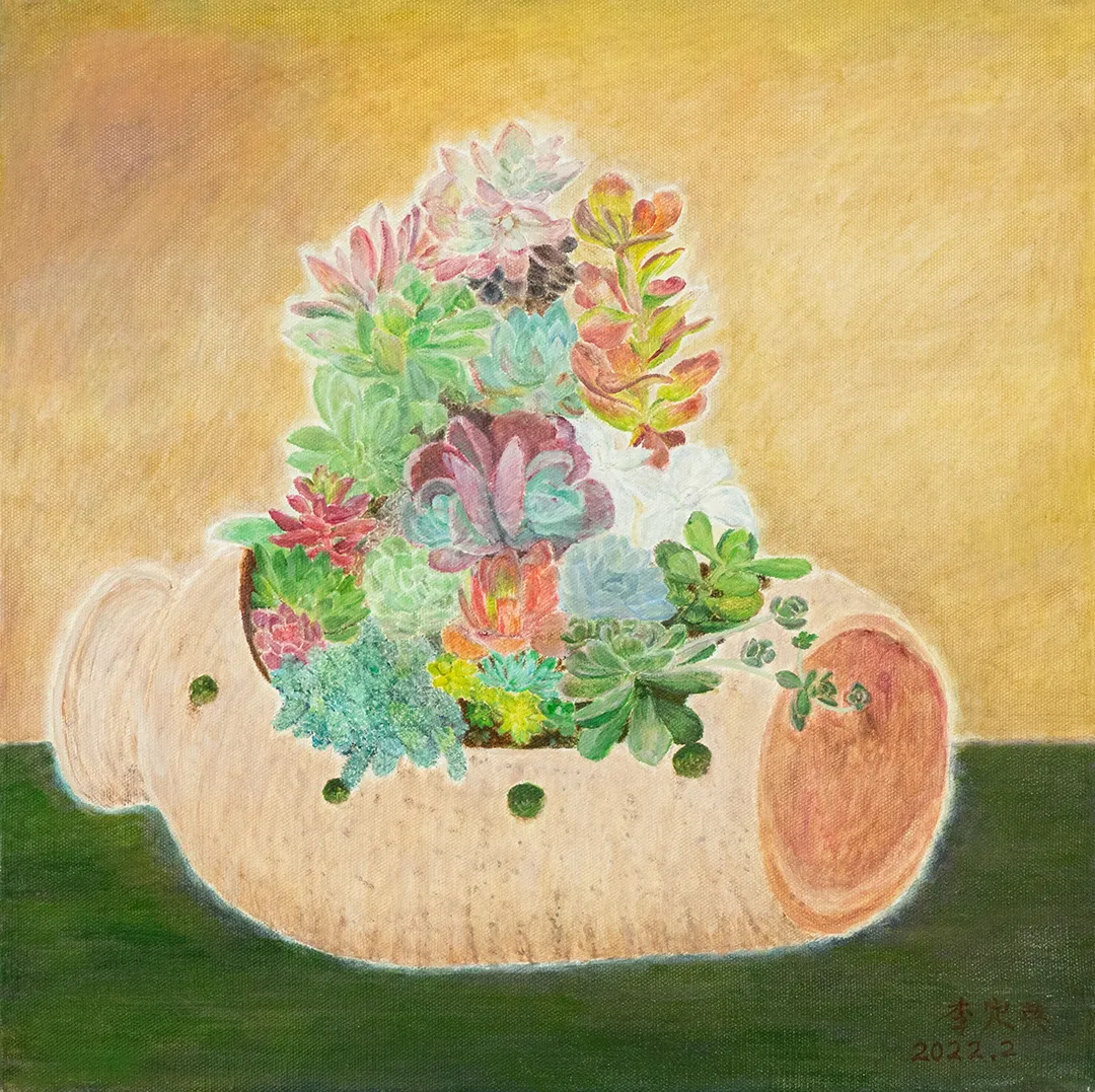 ▲微缩花园 Miniature garden,2022,布面油画,Oil on Canvas,80x60cm