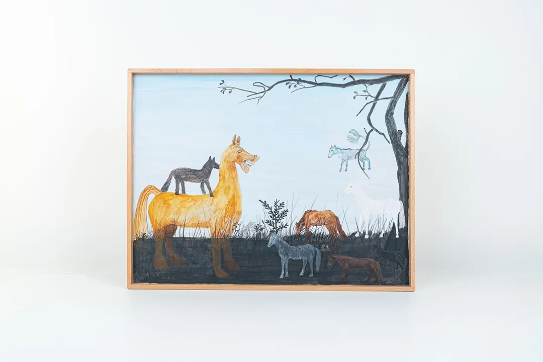 ▲群马荟萃Gathering of horses,2026,托盘丙烯画,Tray acrylic painting,50x39cm
