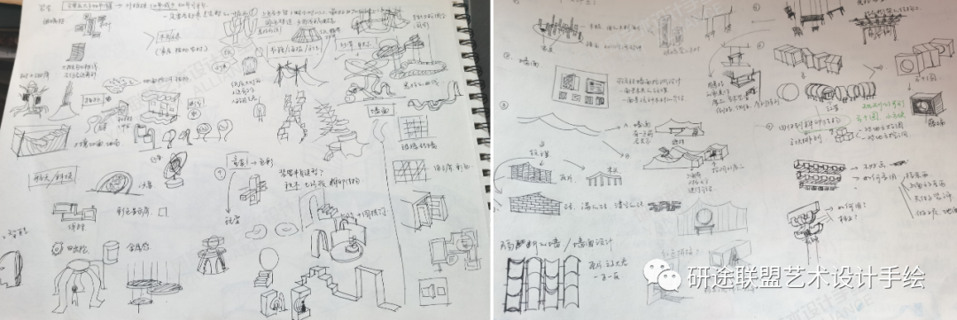 首先大家可以准备一个本子,把自己的想法都记录在本子上。平时搜图时也可以积累一些装置、技术等进行转化分析为自己的装置。在本子上简单勾勒一遍也可以加深印象,之后如果需要的时候就可以直接把对应的内容提取出来。