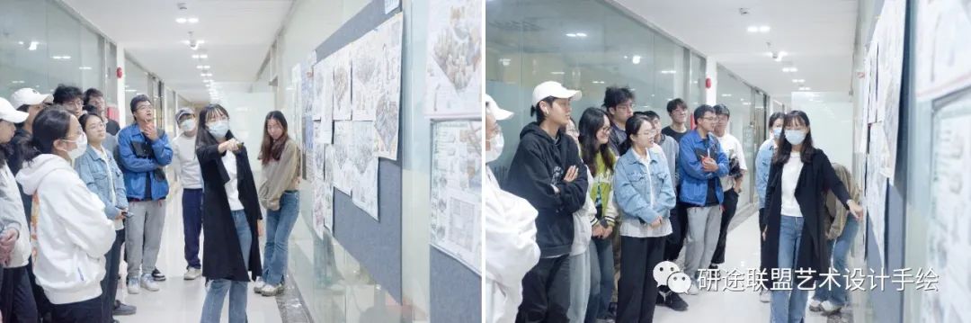 △ 暑期快题、展柜评画 同学之间相互交流提意见