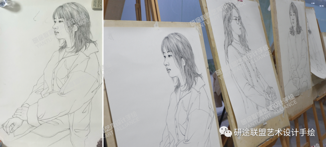 线描的部分建议大家前期多练习提升,注意保持大的造型和比例的舒服,尽量抓住模特的神态,再针对性解决小的问题。后面11-12月就一周画一张维持手感就可以,留更多时间给文化课。线描其实相对算是一个送分的部分,分值占比大、发挥也会比较稳定,所以这部分的基础分数一定要拿到!